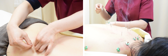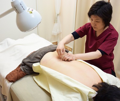鍼灸施術で、「背骨のきわ」を施術します。