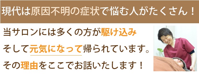 原因不明の症状・不定愁訴でお悩みの方の身体をチェックしていくと、ほとんどの方に見られる共通点があることに気付きます。