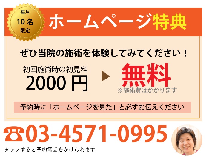 ※施術時間は、初回は120分前後、2回目以降は約90分となります。